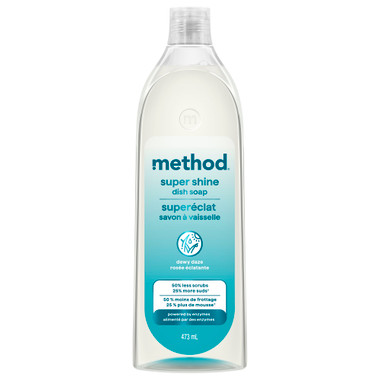 method super shine liquid dish soap, powered by enzymes, dewy daze scented, 473mL
